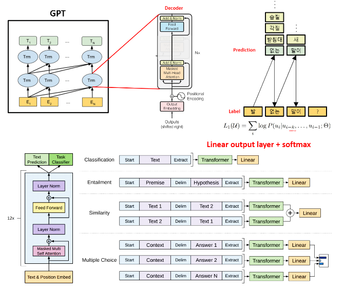 -GPT는 입력 문장에 대해 Context 벡터 출력 및 Linear 레이어를 통한 분류를 위해 개발되었다.