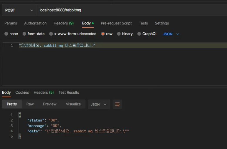 Publisher는 Rest를 기반으로 메시지를 전달받아 RabbitMQ로 보내도록 만들었다.
