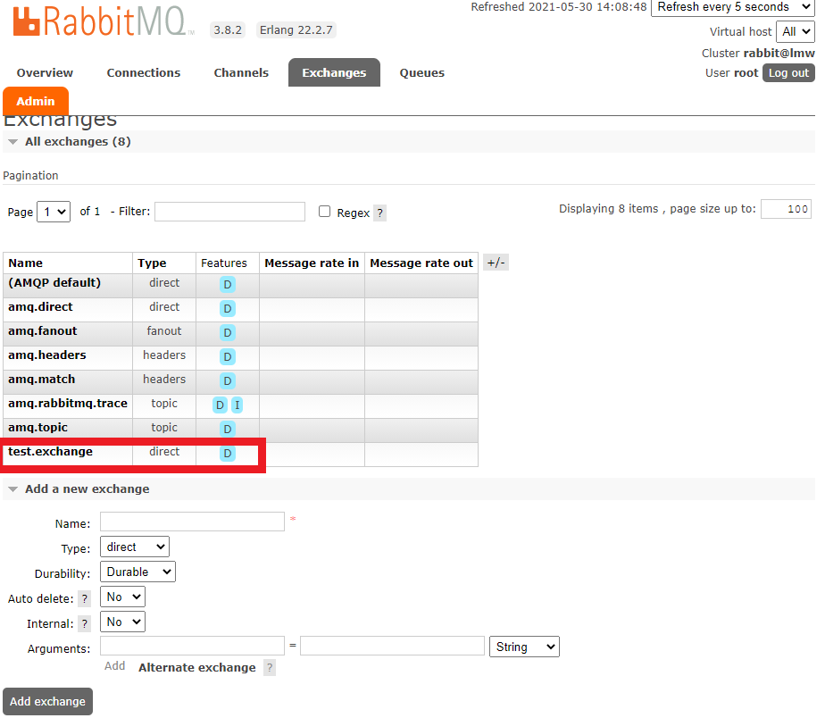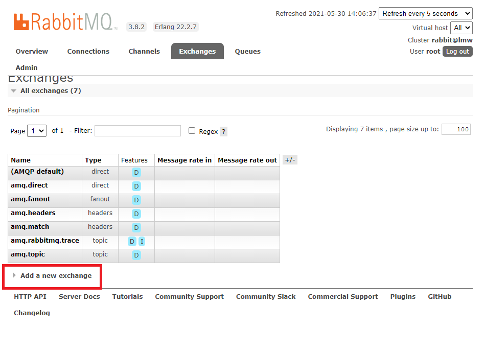 하지만 나머지 구성요소들인 Exchange와 Queue는 코드가 아닌 직접 설정으로 만들어주어야 한다.