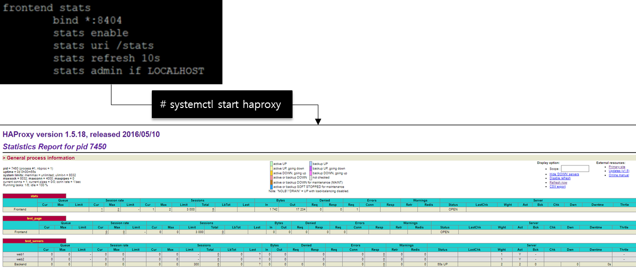 HAProxy는 각 프록시의 상태 정보를 제공하는 관리 페이지를 제공한다.