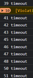 그리고 다음과 같은 setTimeout 코드는 1초가 아닌 보다 긴 간격으로 실행됨을 확인할 수 있다.