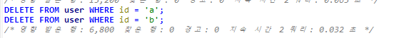 그리고 DELETE의 경우는 하나씩 삭제하는 것이 빠른지, IN에 조건을 넣어 삭제하는 것이 빠른지 알지 못한다.