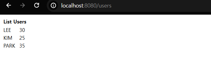 Controller에서 사용자를 return하지 않고 웹 페이지에 진입해보자.
