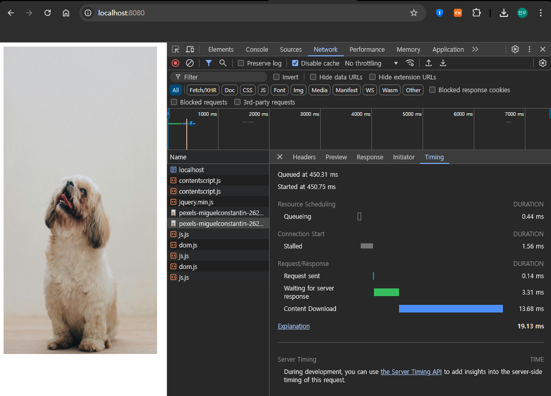 이렇게 하면 원본 이미지 로딩이 다음과같이 매우 빨라짐을 확인할 수 있다. (0.019초)