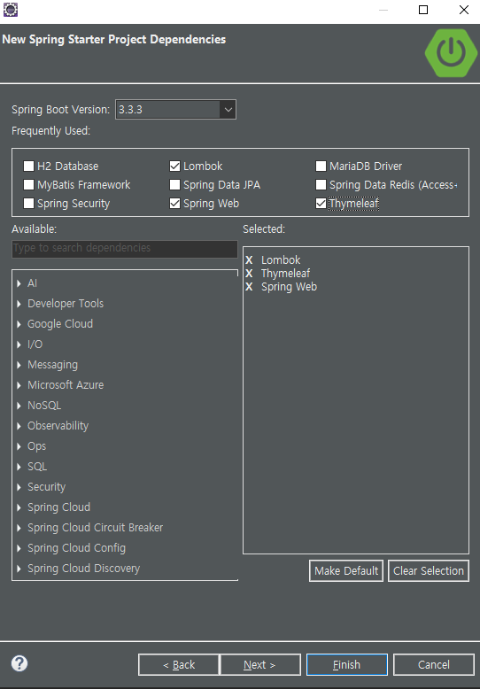 화면에 출력을 할 것이기 때문에 Thymeleaf 디펜던시까지 추가했다.